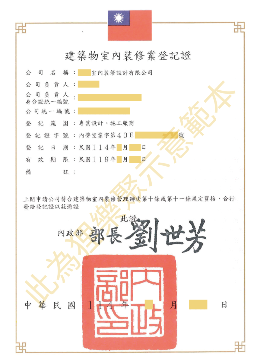 因此,裝修不是單純的裝潢。合法的「室內裝修」涉及結構與空間變更的工程,依法須由具備專業證照的室內裝修公司來執行。未持有此登記證的公司,不得合法執行室內裝修設計與施工。該登記證為裝修業者合法執業的重要依據,其有效期限為五年,逾期必須換發才能繼續執業,也是確保工程品質與後續保障的官方憑證。