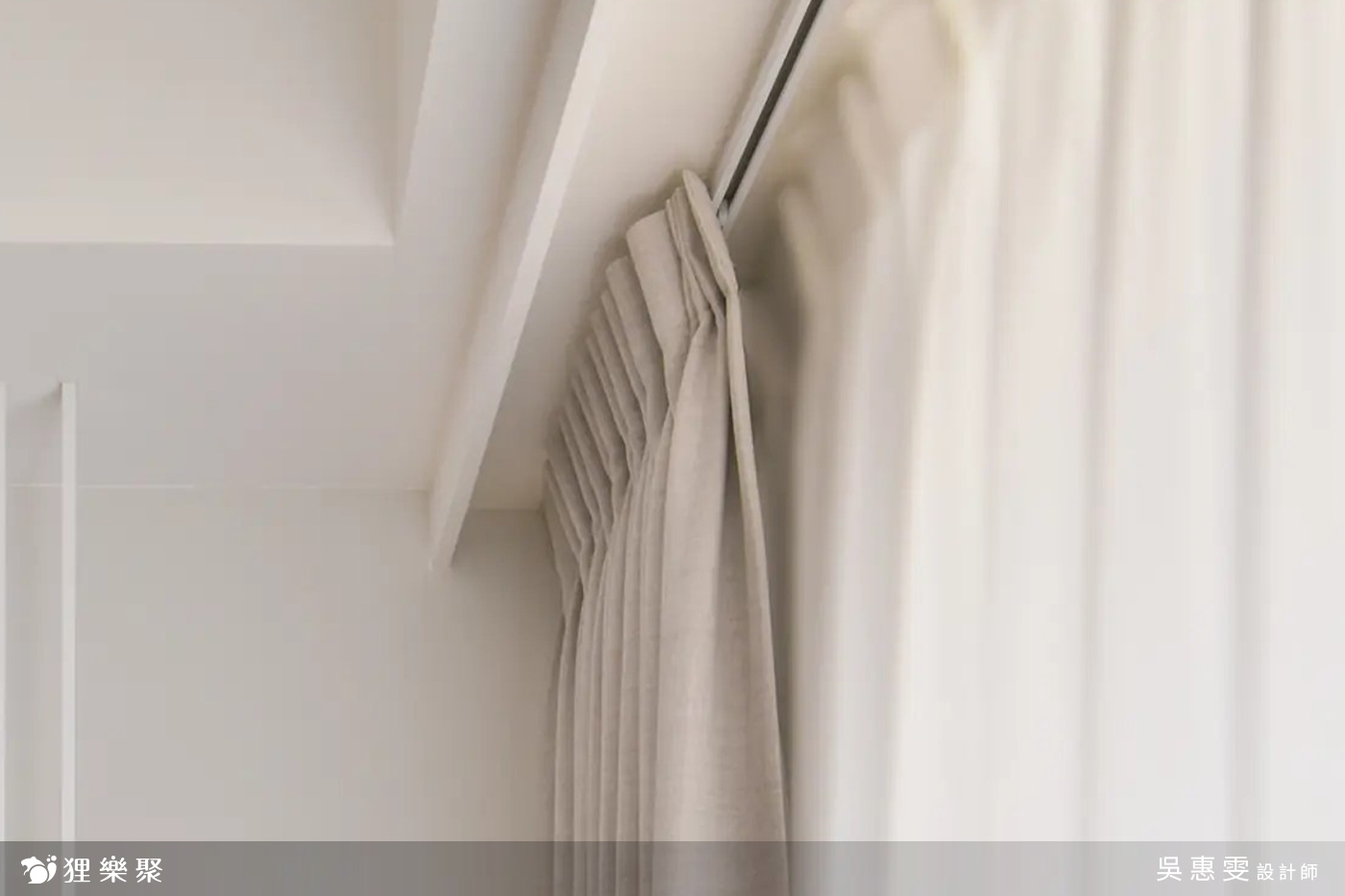 還有,若不做窗簾盒的狀況下,確認窗簾布的尺寸時要與廠商達到共識,以廠商實地現場丈量為準來計算,因為沒有既有窗簾盒時,丈量尺寸多抓的空間容易導致認知不同,使後續產生溝通誤解。