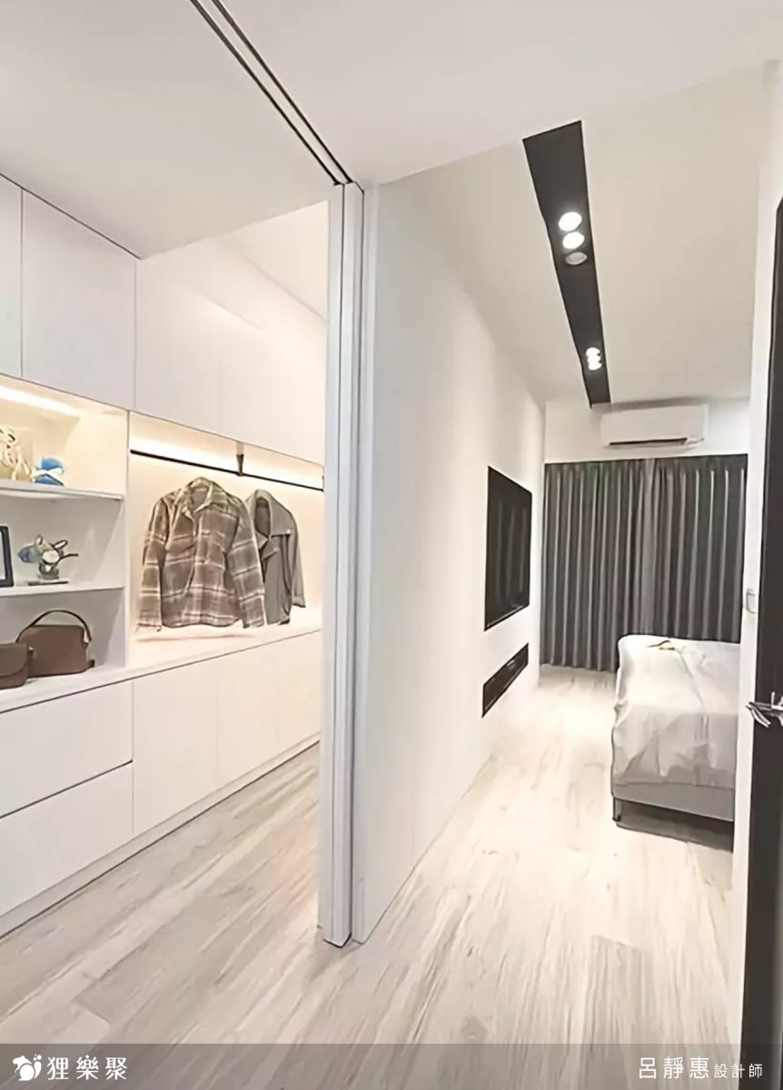 除了將更衣室規劃於臥室內、動線上外,若是空間足夠的話也可以獨立規劃衣帽間,便能減少濕氣致使衣物發霉的機率,也能使衣物的收納機能更為完整。