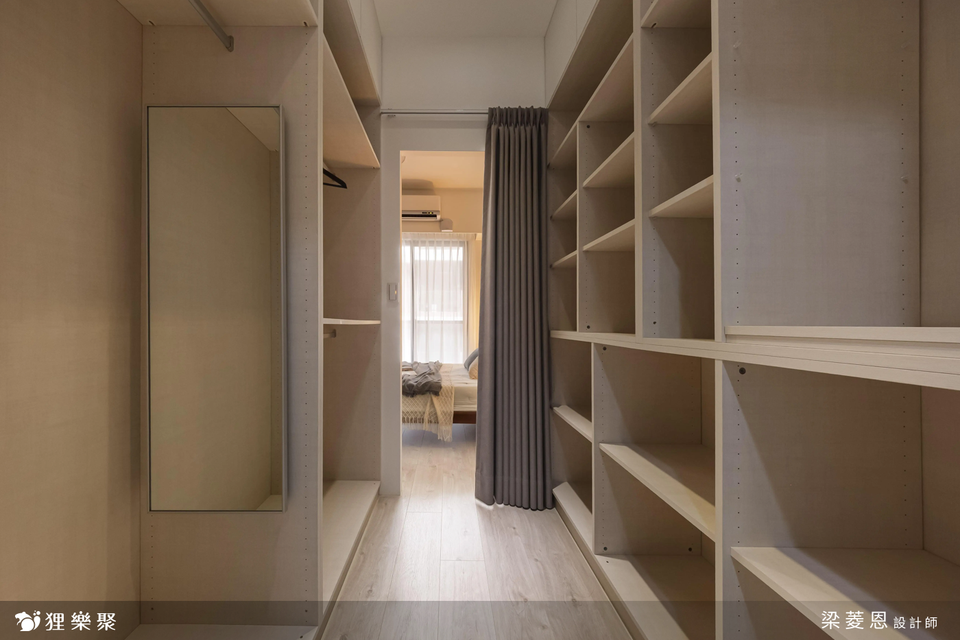 居家坪數不大,能怎麼規劃更衣室呢?若是無法設計出獨立的更衣室,裝潢設計時不妨利用家中的畸零角落,搭配櫃體、拉籃,並透過布簾、拉簾區隔,便能創造實用的更衣收納機能。