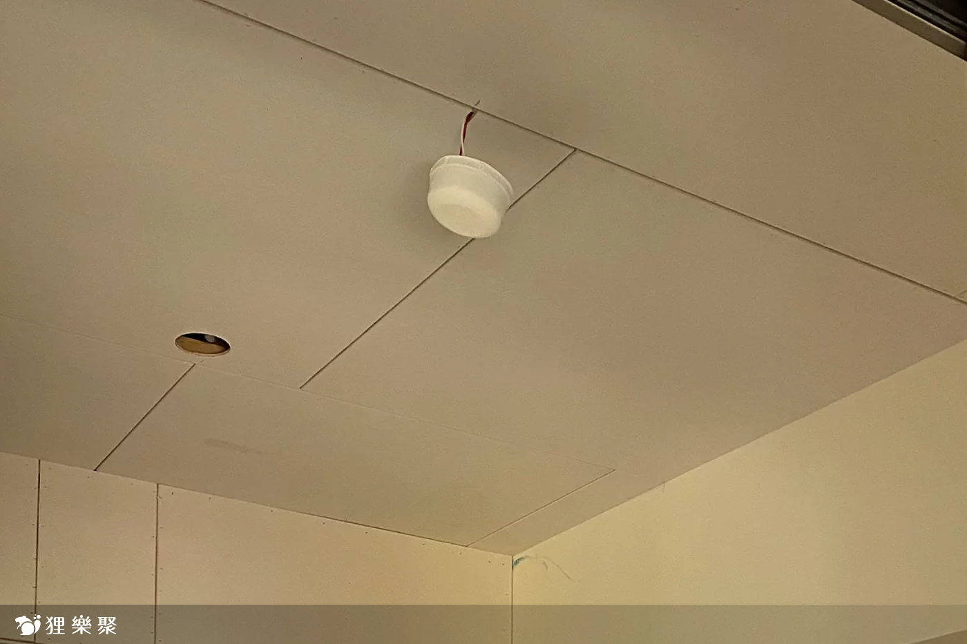 倘若是用牽涉封板的天花板裝潢方式,如最基本的平釘天花板,就能夠將燈具的出線口、監視設備、消防逃生燈的插座、冷氣風管與排水管、水電管線、瓦斯管線全數隱藏,通常這些管線、設備都會在木作封板之前,就全數定位。