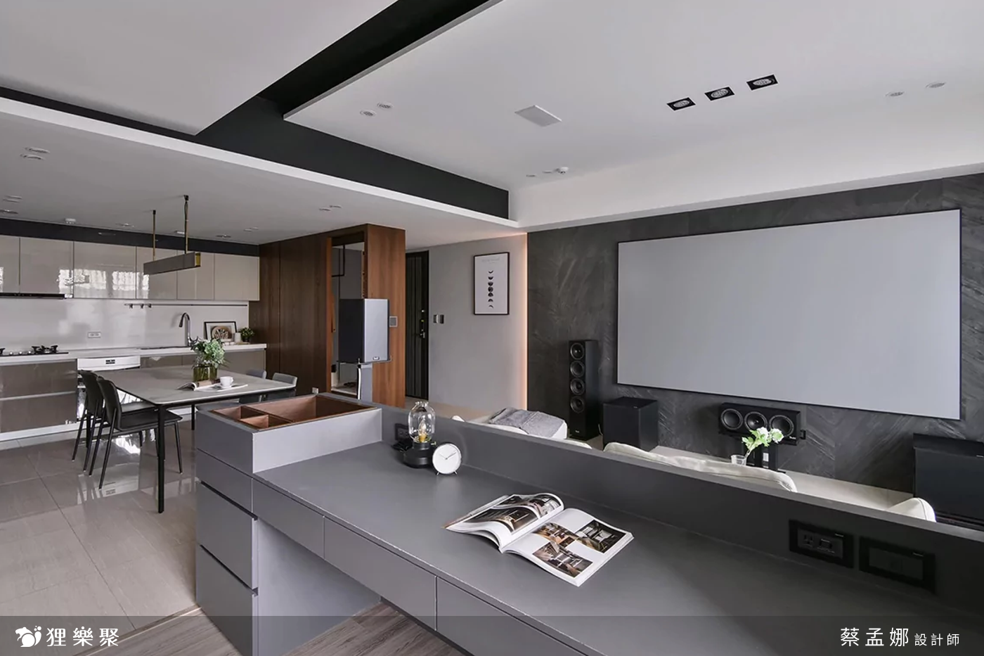 但實務上,並非所有人的家裡都能有條件擁有獨立的空間來做視聽室,此外在生活中,獨立空間的視聽室也代表著空間用途僵化,而將視聽室擺在開放的空間,這個空間也可以同時作為客廳、餐廳、書房等其他用途,會更為靈活。
