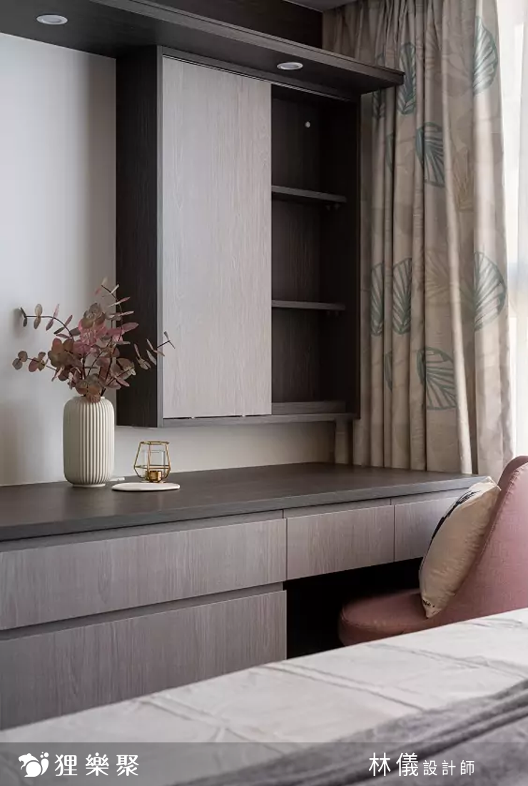 回到臥室躺床,總是希望能放空腦袋,早點入睡,但臥房紛亂的物品、床頭窗外閃爍的燈光難免吸引目光追逐,看見化妝桌煩惱妝容、SOHO族看著辦公桌苦惱明日的會議。若善用隱藏收納設計,即可減低干擾,還給眼睛與腦袋清淨的空間。