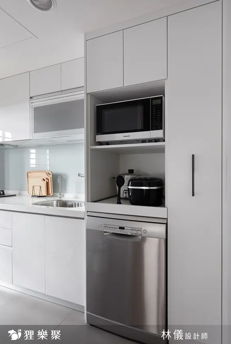 相較嵌入式,用一般電器櫃會更有彈性,即便真的事前並未挑選好家電機型,也能大致了解市面產品的尺寸、預想會有幾個家電來做廚房設計規劃,只要在事後採買時注意尺寸放得下即可。但要做電器櫃裝修一定要注意保留走道空間,才能讓櫃門、抽屜開關順利。