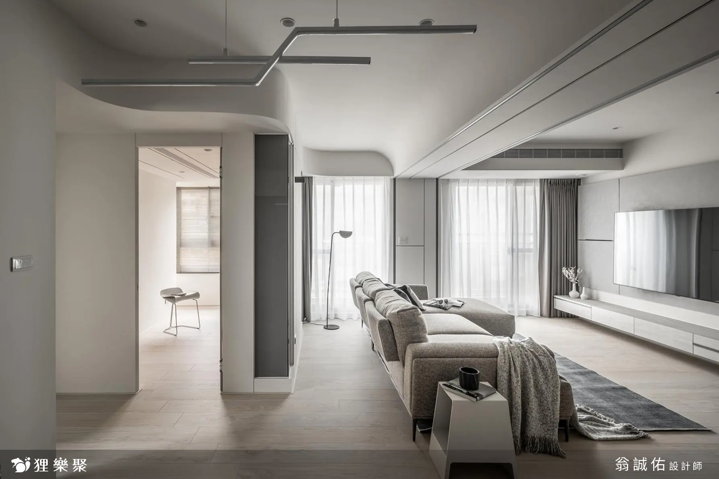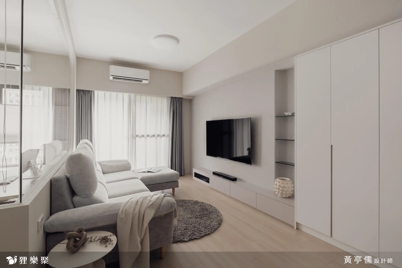 這是一間三房兩廳共30坪的新成屋,屋主喜歡俐落的現代風裝潢,又有器皿收藏的需求,加上喜歡與三五好友聚會,因此希望客廳設計能夠大方又舒適。