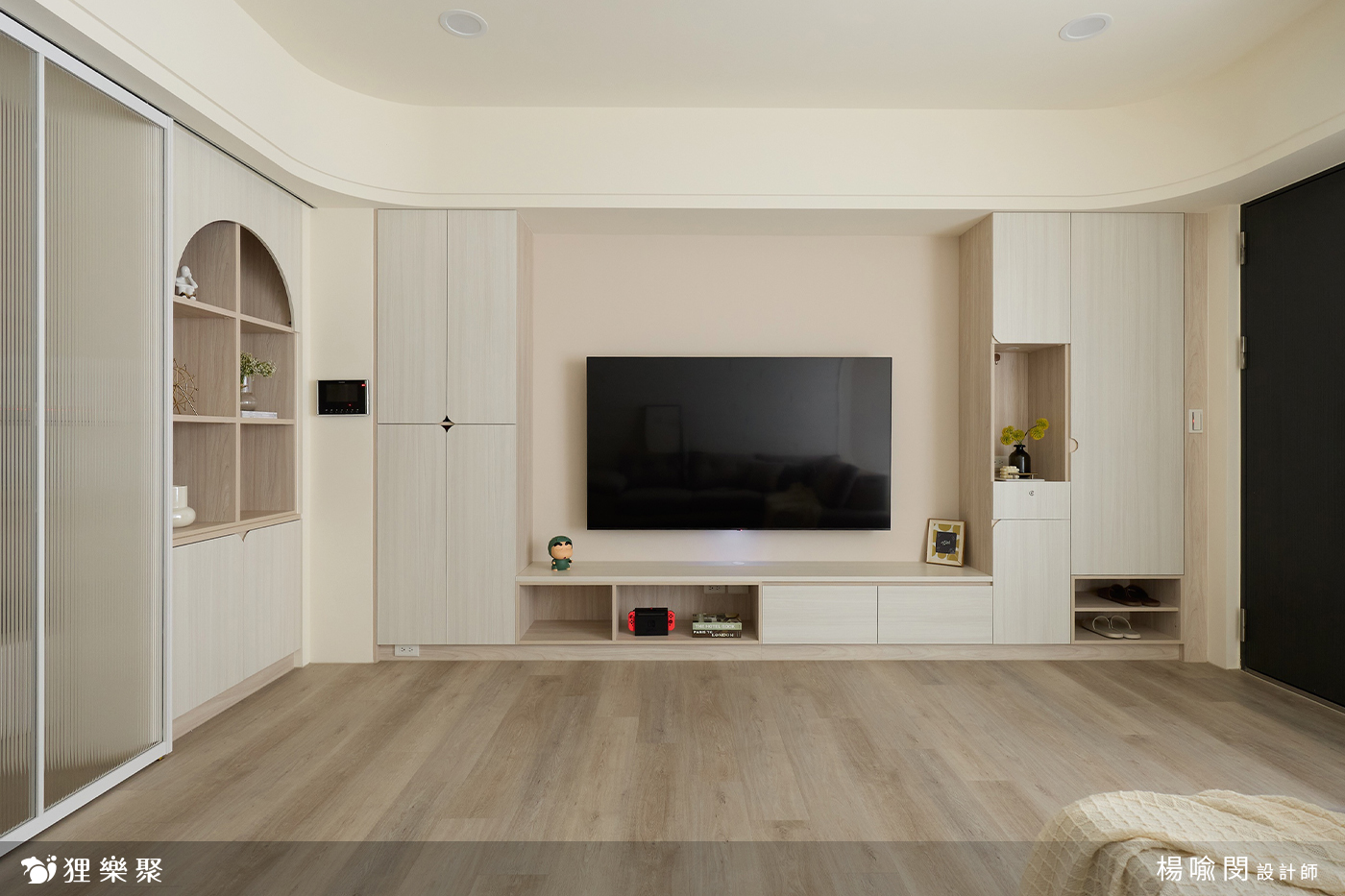 走進這個家,彷彿踏入一首以北歐奶油風譜寫的溫柔詩篇。無所不在的圓弧以溫柔的姿態環抱著居住者,溫潤地板與柔和的奶茶色奠定了空間的暖度,光線透過紗簾流淌室內,營造出放鬆而美好的生活感。